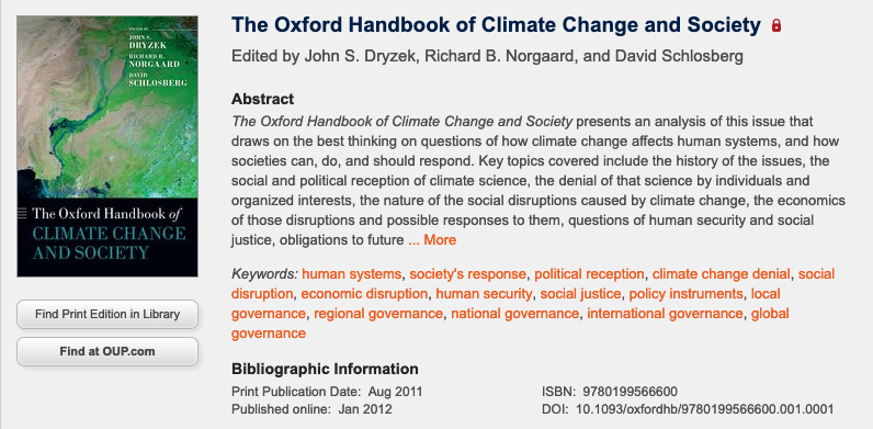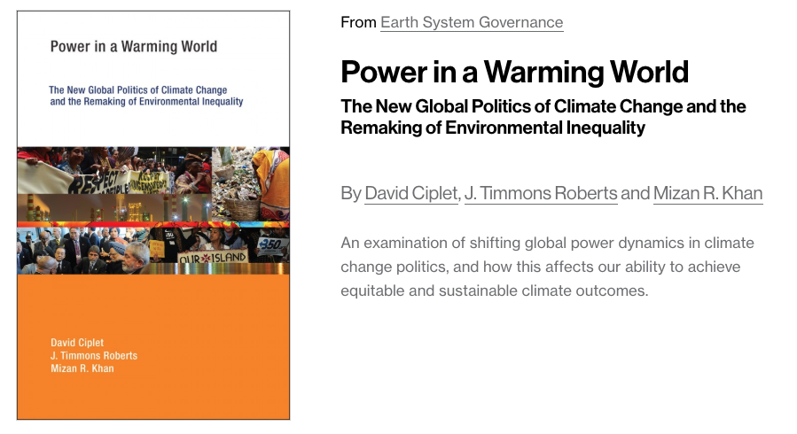 From the publisher: Drawing together a multidisciplinary range of authors from the Global North and South, this Handbook addresses some of the most salient topics in current climate justice research, including just transition, urban climate justice and public engagement, in addition to the field’s more traditional focus on gender, international governance and climate ethics. With an emphasis on facilitating learning based on cutting-edge specialized climate justice research and application, each chapter draws from the most recent sources, real-world best practices and tutored reflections on the strategic dimensions of climate justice and its related disciplines.